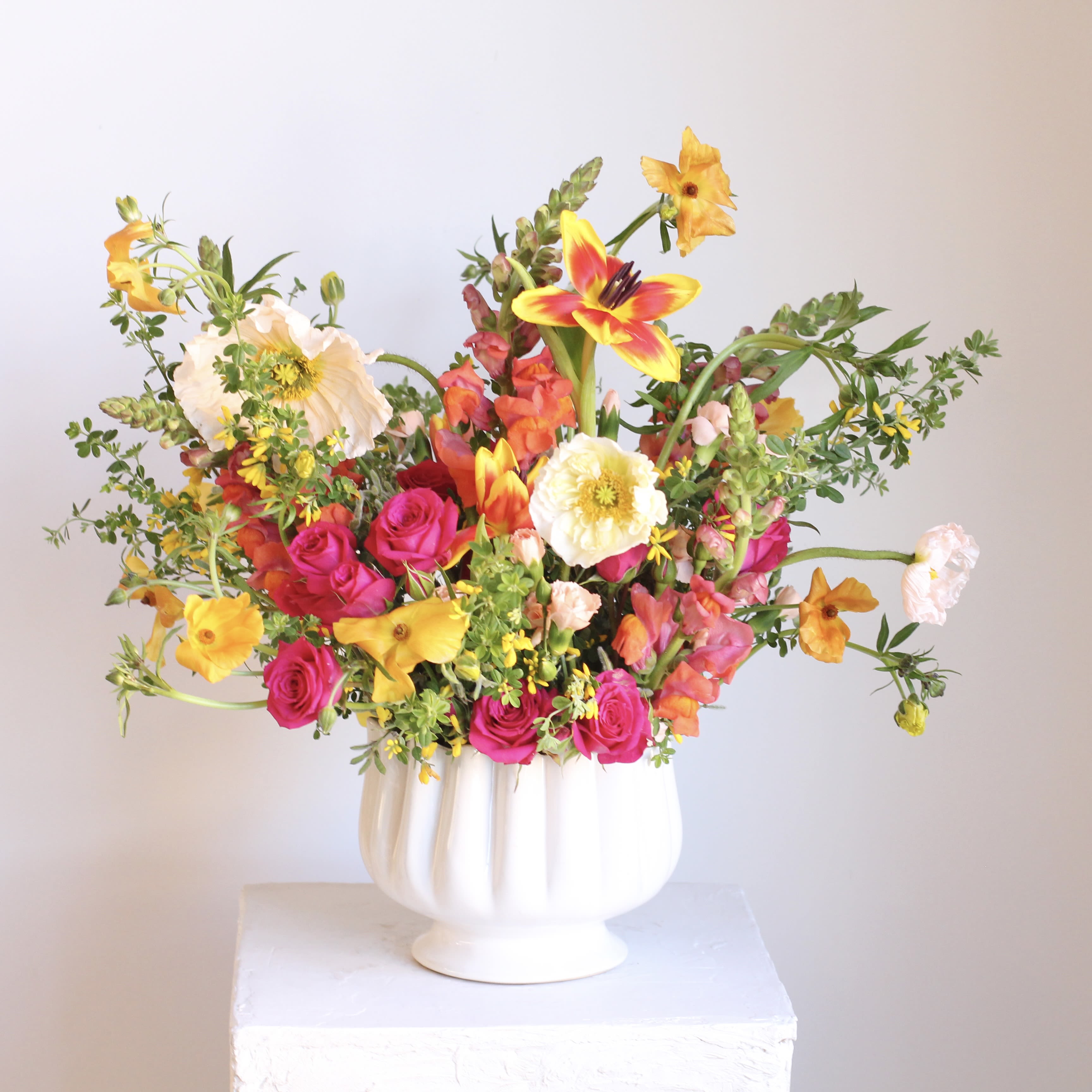 While availability of blooms like roses, lilies, orchids, and seasonal flowers may vary, every arrangement is handcrafted with attention to detail to ensure beauty, freshness, and comfort for the occasion.